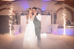 Sur-mesure, mise en lumière des lieux intérieur et extérieur, mise en scène avec machines à effets spéciaux des moments forts du mariage.